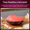 - ADJUSTABLE 2-POSITION LID LATCH: Easily prepare thin or thick stuffed quesadillas with the adjustable locking latch that secures the lid for even cooking and automatically sections your quesadilla into 6 perfectly sized wedges.