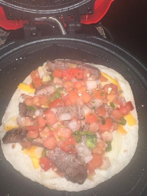 [This review was collected as part of a promotion.] Love this quesadilla maker It makes perfect, golden quesadillas every time. I really like the two-position locking latch it lets you add extra stuffing without all the cheese and toppings spilling out. The edges seal nicely, and cleanup is super easy. It heats up fast, cooks evenly, and makes big, full-size quesadillas that come out restaurant-style. Definitely a favorite in my kitchen!
