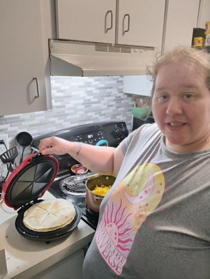 [This review was collected as part of a promotion.] A good quesadilla maker. It’s the first one I’ve owned because I didn’t think they were necessary, but they do cook a quesadilla quicker than on a pan and more evenly. The tortilla does become a little dry, but over all a nice product to have in my kitchen.