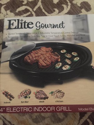 [This review was collected as part of a promotion.] wow my Elite Gourmet 14" Electric Indoor Grill is awesome and it came on time now that it's to hot to us the oven not only that but it's a better health option for my family and kids love all grill food that's to elite Gourmet thank you so much.