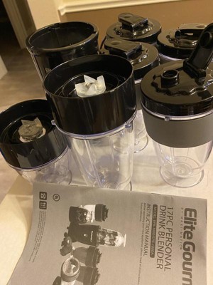 Elite Cuisine 17pc Personal Blender Black: 300W, 16oz Capacity, Dishwasher-Safe, Mixes & Chops, 1 Speed, Stainless Steel