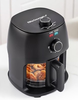 [This review was collected as part of a promotion.] The Elite Glass Air Fryer is good for small portion food prep. It is 2.4qts only so I used it for fries and nuggets. The heat can be programmed up-to 400F. Best thing about this air fryer is that you can see your food being cooked without the need to open the rack in the middle of cook session. So no heat lost and you get that perfect oil-free crisp. Easy to clean as well.