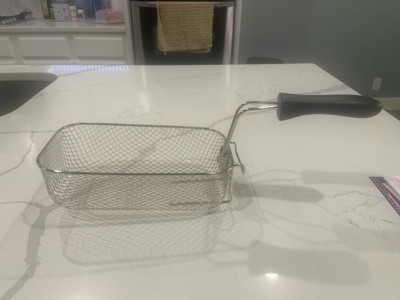 - Removable frying basket with cool-touch handle safely lowers and lifts basket from oil.