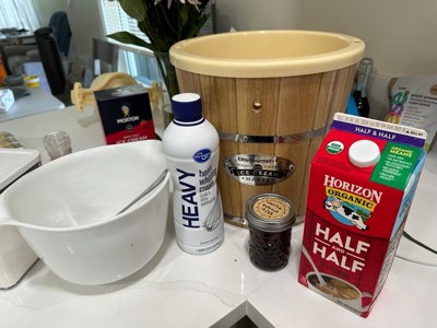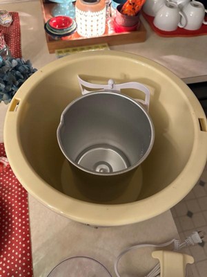 [This review was collected as part of a promotion.] My husband has wanted one of these things forever, and we finally have one! It’s large and looks nice and old-timey. Everything is electric so there’s no hard work involved despite the vintage look. I actually want to leave it out, but counter space is limited, so we will have to store it when not in use. The recipe book was handy, and the ice cream was rich. Keep in mind that it does come out more like a soft serve, although it’ll harden up a bit after some time in the freezer. Love, love, love that you can store it right in the canister too. If you’re in the market for an ice cream maker, this is the way to go.