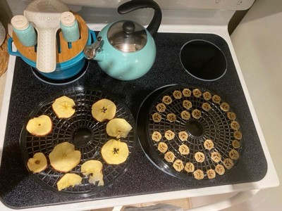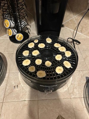 [This review was collected as part of a promotion.] Today I dehydrated 1 apple and 1 banana to see how they would come out. They were absolutely delicious! This dehydrator works well, and it’s very easy to use. You change the temperature with a little knob on the front. The trays are large and there are quite a few, so you could do a lot of things at once. There was also a manual that came with the dehydrator that basically walks you how to do a lot of things! I’m excited to keep using this dehydrator and make lots of yummy things.