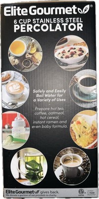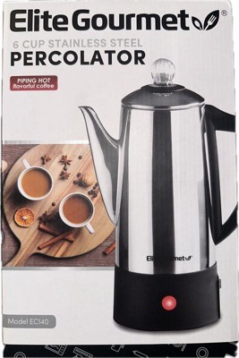 [This review was collected as part of a promotion.] The Elite Gourmet Stainless Steel 6 Cup Percolator has exceeded my expectations! As a coffee and tea enthusiast, I appreciate its lightweight design and perfect 6-cup serving size. The stainless steel filter is a game-changer – no more fuss with changing filters, just easy cleaning. Operating this electric percolator is a breeze, resulting in a perfect brew every time. If you want convenience, efficiency, and great taste in one package, this percolator is a must-have!