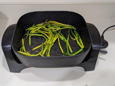 [This review was collected as part of a promotion.] This electric skillet has been a game changer for my dinner routine. I am a stay at home mom and I cook dinner at home 7 days a week. This appliance has made meal time with my picky and inpatient toddler SO much easier. The first thing that I cooked in this skillet was scrambled eggs and it was a dream. Before ordering this electric skillet I would waste so much time cleaning my cookware that is supposed to be non-stick. I would have to scrub and soak all of my pans after each and every meal. It only takes me a couple of minutes to wipe out this electric skillet and I get to spend the rest of the evening with my family. I have also made asparagus and several one pot dinners. I love absolutely everything about this electric skillet and I wish that I would have ordered it sooner. If you are looking to make meal time easier you need this in your kitchen!