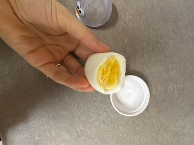 - Built-in timer automatically adjusts cooking time for perfect eggs every time