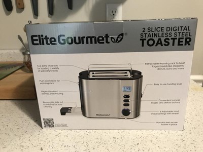 [This review was collected as part of a promotion.] I got my Elite Gourmet - Elite Gourmet Stainless Steel 2-Slice LCD Toaster with Bagel Function last week. I absolutely love how easy it is to use and it's beautiful stainless steel. I recommend these to everyone it has different ways for your toast or bagels. I love it thanks for a great toaster.
