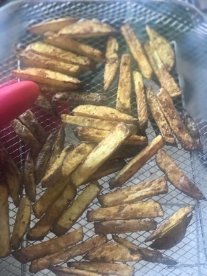 [This review was collected as part of a promotion.] I am always looking for the next great air fryer, that meets all my needs. Ideally, it wouldn't take a lot of room, but you can't have your cake and eat it, too. I need an air fryer that is big enough to cook fries or wings for 2 people, so it would have to be pretty big. This air fryer is a pretty standard type for countertop convection ovens. As far as size, it is big enough to cook for 2 or more, depending on what you cook. I have used it to make wings and I think I could fit around 15 wings in the basket. You can also fit around 4 burgers or enough fries for 2 people. What I like best about this air fryer is that it is a lot more quiet than other similar products. My other air fryer looks very similar, but the doors don't stay open. I know, it's ridiculous. I always have to use something to prop the doors open while handling food. In other air fryers the basket is slightly bigger, where it sits on the shelf by itself, while in this case, it sits on the baking tray. I can't say it has been an issue for me, so far. The menu is very easy to figure out and the instructions are simple. Once you turn it on, you have a lot of preset functions. So far, I have followed them and I was satisfied with the result. Instead of trying to figure out the right temperature and time, I just go with the standard settings. The fries came out good, and so did the wings (nice and crispy, if you add some baking soda to the seasoning). The basket and tray were very easy to clean. I just soak them in warm, soapy water for a little bit first. So far I am pretty pleased with this oven and I like it better than other brands. I can't wait to try more meals in it.