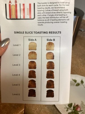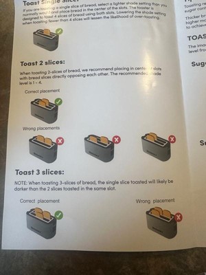 [This review was collected as part of a promotion.] This is a great toaster. We had a 2 slice after our son graduated and went to the Army. But, it’s always a hassle when we have company with a 2 slice. So, lesson learned. I love this toaster, it is sleek and super easy to use. My bagel was cooked perfectly. The instructions are literally fool proof. There are literally pictures of toast cooked at different times. And it even shows you pictures of how to place the toast in there to cook the best. Great toaster.