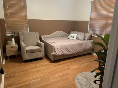 - Curved headboard design