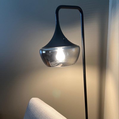 Eliza Floor Lamp Black - Adesso: Contemporary Standing Light for Living Room, Smoked Mercury Glass Shade, Metal Body