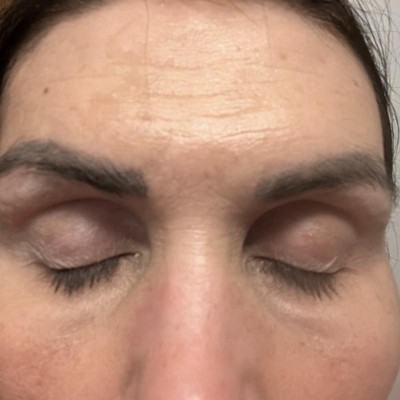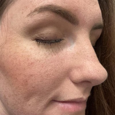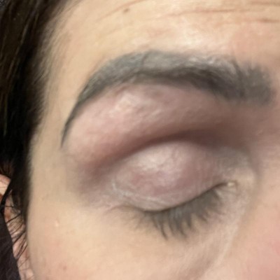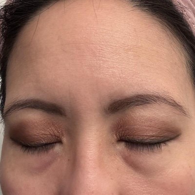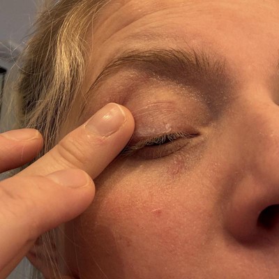 Accentuates every crease, line, and wrinkle around the eye. Makes it look dry. Is so difficult to wash off. Its gross.