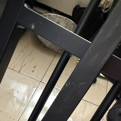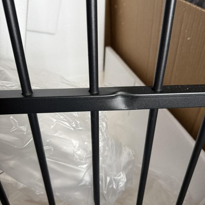 Crate arrived badly dented on the metal pieces. Also came with many scratches and flaws in the metal and wood.
