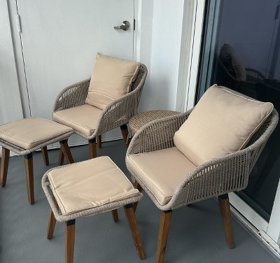 Love them. Fits my balcony just perfect. Exactly what I needed. Super easy and fast to build. One of my pillows came with dents but as the days pass they are going away. Super comfortable. Highly recommend.