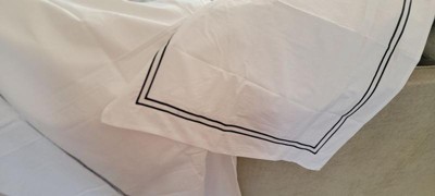 [This review was collected as part of a promotion.] I’ve been using this duvet cover set for a few weeks now and I’m honestly really happy with it. The cotton percale feels crisp and cool, exactly what I was hoping for, and it has that hotel-sheet vibe that makes getting into bed feel extra fresh. I went with the black satin stitch, and it adds a nice, clean detail without being too bold or flashy. It came with a duvet cover and two shams, and everything washed up beautifully with no pilling or fading. The hidden button closure and corner ties are a nice touch, they keep the duvet in place and make it easy to change out. I’ve had sets before where the duvet shifts around like crazy, but this one holds everything in place. Only small downside is that it wrinkles a bit coming out of the dryer, which I expected with 100% cotton. If you’re really particular about crisp looks, you might want to give it a quick steam or iron. Otherwise, I’m super pleased with the quality for the price. Definitely recommend if you’re into that cool, breathable feel.