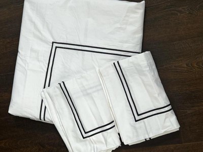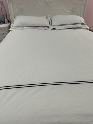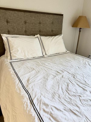 [This review was collected as part of a promotion.] I’ve been using this duvet cover set for a few weeks now and I’m honestly really happy with it. The cotton percale feels crisp and cool, exactly what I was hoping for, and it has that hotel-sheet vibe that makes getting into bed feel extra fresh. I went with the black satin stitch, and it adds a nice, clean detail without being too bold or flashy. It came with a duvet cover and two shams, and everything washed up beautifully with no pilling or fading. The hidden button closure and corner ties are a nice touch, they keep the duvet in place and make it easy to change out. I’ve had sets before where the duvet shifts around like crazy, but this one holds everything in place. Only small downside is that it wrinkles a bit coming out of the dryer, which I expected with 100% cotton. If you’re really particular about crisp looks, you might want to give it a quick steam or iron. Otherwise, I’m super pleased with the quality for the price. Definitely recommend if you’re into that cool, breathable feel.