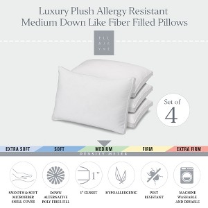 This set of four luxury plush pillows offers medium firmness with down-like fiber fill, perfect for allergy sufferers seeking comfort and support. Highly recommended!