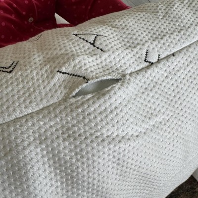 Thank you for letting us know, and we’re sorry your pillow arrived damaged. It should never arrive with a hole along the seam, and we understand how frustrating that is. Please reach out to us directly at support@ellajayne.com with a photo of the damage and your order details, and we will help get this resolved as quickly as possible.