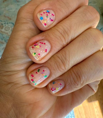 This nail polish is a vibrant and fun addition to any manicure, especially for those who enjoy colorful designs. Guests appreciate its durability and the joy it brings to special occasions, making it perfect for kids and adults alike. While it offers a beautiful confetti look and dries quickly, some guests have noted challenges with removal. Overall, it provides a delightful experience for those looking to add a splash of color to their nails.