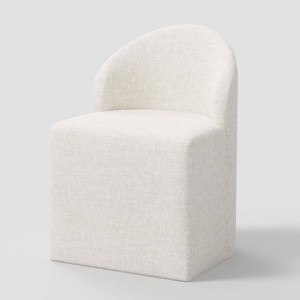 Accent your dining area in sophisticated style with the Ella Tub Upholstered Dining Chair from Threshold™. This dining chair features an armless design with a round back for a stylish look. Set on a wooden frame, this armless dining chair has cotton-linen upholstery for comfortable seating.