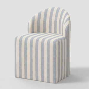 Accent your dining area in sophisticated style with the Ella Tub Upholstered Dining Chair from Threshold™. This dining chair features an armless design with a round back for a stylish look. Set on a wooden frame, this armless dining chair has cotton-linen upholstery for comfortable seating.