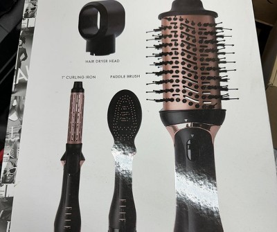 Love this brush / dryer / curling iron set! Everything you need is in one easy-to-use set. It's very lightweight and I love the size of the curling iron. The paddle brush works well and does not get tangled in my hair. The dryer apparatus works well even though it's small. I use this everyday, and I love it! Great price and quick shipping, definitely recommend!