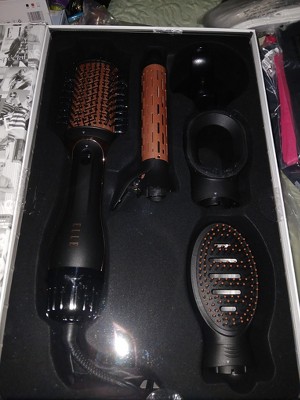 A: Hi, Thanks for reaching out. The ELLE 4-in-1 Hair Styler Set includes multiple interchangeable attachments, so it has both round and oval barrel options. Please reach out to us at 18005929541 or support@sakar.com ticket number 30126 will try to fix issue. Thank you