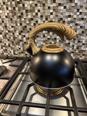 Elle Decor 3-Quart Black Whistling Tea Kettle with Heat Resistant Handle, Tapered Marble Finish Stovetop & Gas Tea Kettles