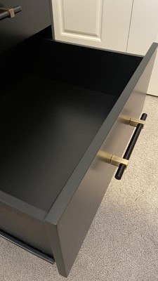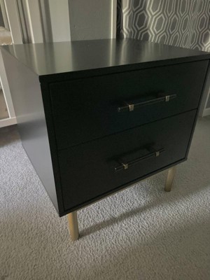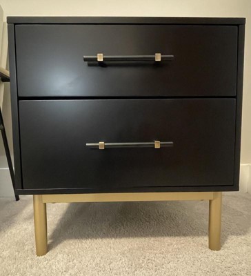 This is a well-made, elegant nightstand. The bronze finish on the drawer handles and the gold finish on the legs add a luxurious look that I would expect to find in on a nightstand in a high-end furniture store. The drawers have a nice depth and open and close with ease. I am using it in my home office, and it looks gorgeous. The only issue with this product was that there were a couple of hiccups in assembly. The illustration for Step 8 (assembling wedges) in the instruction booklet is not clear that the wedges need to be placed on the back of the nightstand. The screws needed to complete Step 11 (assembling the drawer) were too short because the countersink holes in the top drawer were not drilled deep enough. I had to find longer screws that I owned to replace them. The countersink holes in the bottom drawer were drilled deep enough to use the screws that came with the nightstand. Despite the assembly issues, this is a beautiful nightstand. It’s definitely another winner in the Threshold furniture line.
