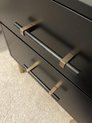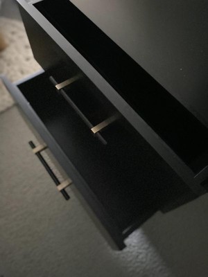 The Ellery Luxe Nightstand is a beautiful piece for your home! The metal hardware makes this nightstand look super high end. It has nice deep drawers for storage alongside your bed or just set in a corner to display home decor. The black color is a true black. The veneer is on the thinner side so I’m concerned it’s going to chip easy. I would trust the finish on this one to look good for many years to come. It did take around an hour to put together. The drawer fittings are a newer style and a bit odd to say the least. Not sure why they decided to switch to these but it made things more interesting to put the drawers together. The upside is the drawer depth, the downside is the veneer finish.