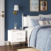 Add an elegant finishing touch to your bedroom decor with this Ellery Luxe Nightstand from Threshold™. Featuring a wooden frame with a painted finish and four gold-painted legs, this versatile nightstand makes a great complement to a variety of decor styles and color schemes. The 19-inch-wide top is great for holding alarm clocks, charging stations, framed photos or boxes of tissues, and the two pull-out drawers offer a convenient out-of-sight storage option.