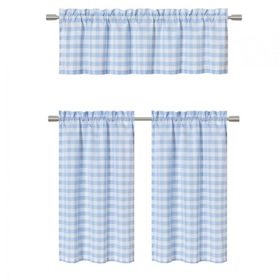 Kate Aurora Modern Country Farmhouse 3 Piece Plaid Checkered Cafe Kitchen Curtain Tier & Valance Set