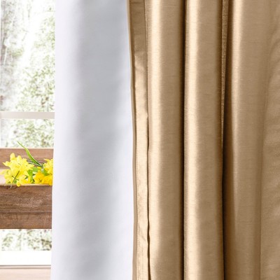 Stunning from floor to ceiling. A sheen that shifts beautifully with the light, our faux silk will bring elegance and class to any room. 100% polyester fabric gives the look of silk without the cost. Fully lined to further enhance the drape. Back tab design offers 3-way hanging options: 3" rod pocket for a classic look, back tabs for a pleated effect, or clip rings for easy slide open and close. Available size - 100x63", 100x84" and 100x96". Color: Taupe.
