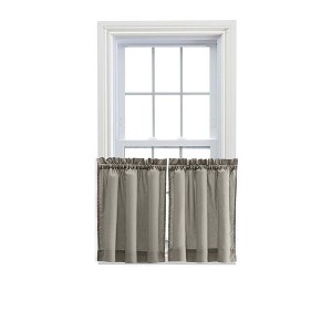 Ellis Stacey Solid Color Window 1.5" Rod Pocket High Quality Fabric Tailored Tier Pair Grey - 1 of 4