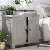 With two easy-open doors and a fixed shelf mounted inside the sturdy wooden end table, you will have all the room you’ve been looking for in a bedside table for books, papers, or other personal items. The soft gray painted wood makes this rustic yet modern accent cabinet the perfect choice for the living room, bedroom, home office, or wherever you decide to place it. This rustic storage console has the classic styling you want with the sturdy quality you need.