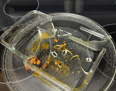 Broken dish, manufacurer recommends allowing food to reach room temperature prior to heating