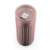 The Ello 16oz Vera vacuum insulated stainless steel travel mug combines fashion and function. A unique texture and illuminating metal paint finish make Vera the perfect compliment to any outfit. Vacuum insulated stainless steel keeps drinks hot up to 5 hours and cold for up to 20 hours. A sealing slider lid is leak-proof and designed for easy open and close. Lid is top rack dishwasher safe and compatible with most car cupholders with base width of 2.94 inches.
