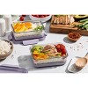 [This review was collected as part of a promotion.] I love that these can be used for meal prep or leftovers or snacks. They are very durable and easily stacked in our tiny kitchen cabinets. I was a bit nervous that they were glass but definitely a thicker material without being bulky. They clean super easy, and I love that the purple part easily comes on and off to do a thorough cleaning. I especially love that it's a purple design 💜 my favorite color! Definitely makes it easy to spot so I don't leave it behind. I'm in love with this storage set and might have to look into additional pieces by this brand!
