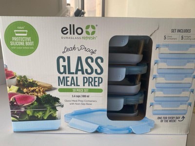 - Ello Duraglass 10pc Meal Prep Food Storage Containers includes five 3.4 cup glass containers with airtight, locking lids so you can keep your food fresh for much longer.