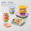 - Set of 9: Includes (3) 1 cup round, (2) 2 cup round, (2) 3 cup round, (1) 4.5 cup rectangle, and (1) 6.5 cup rectangle glass containers with press fit leak resistant lids.
