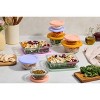 The Ello Everyday 18-piece Meal Prep Set includes nine glass containers in assorted sizes: (3) 1 cup round, (2) 2 cup round, (2) 3 cup round, (1) 4.5 cup rectangle, and (1) 6.5 cup rectangle glass containers, each with press fit leak resistant lids. Designed for your convenience, these containers are top rack dishwasher safe, as well as microwave and oven safe (without the lid), making them ideal for cooking, reheating, and easy cleanup. Our non-porous glass ensures that it won't absorb stains or odors, keeping your food fresh and your containers looking new. Plus, the space-saving nesting design ensures easy storage in your kitchen. Please remember to let containers cool before placing them on wet or cold surfaces.