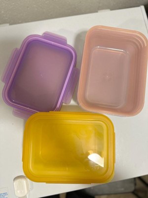 [This review was collected as part of a promotion.] These are nice heavy duty, plastic containers and are easy to clean. I like that they are BPA free & come in pretty, bright colors. They hold quite a bit of food, making them versatile for liquids or solids. HOWEVER- they are incredibly hard to seal! On almost each container, we had to take off the lid and try to reseal just to get ALL of the tabs to close. Many times 1-2 of the tabs would not close, and we would have to unclasp the others just try to and make every single one clasp. Over and over, multiple times we had to do this to get them all to close. It was incredibly frustrating. Same thing happened when we opened to reheat or grab some food out. Because of how incredibly ridiculous it was to get them to close, I DO NOT recommend these.