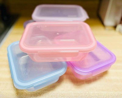 [This review was collected as part of a promotion.] This set of food storage containers presents an appealing design and functionality. 5 cute pastel colors which i love. The containers are suitably sized for storing leftovers or packing lunches for the workplace. Each unit boasts a distinct color, yet they harmonize effectively, allowing for versatile mixing and matching of lids and containers. Constructed from moderately thick plastic, these containers demonstrate durability over time. Notably, each lid features a rubber gasket and latch system on all sides; however, the latches exhibit inconsistency, with one lid failing to engage properly and others displaying loose latches that open with minimal pressure. Upon conducting a water leak test, three containers exhibited leakage when positioned on their sides. So I recommend to store only dry foods no liquid and not a good idea to microwave with the lid on. While these containers are suitable for microwave reheating, they are not designed for cooking purposes. Given my primary use of plastic containers for storage followed by stovetop reheating, these containers meet my requirements.