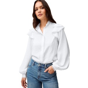ellos Ruffle Shoulder Blouse With Flat Pom Pom Trim - 1 of 3