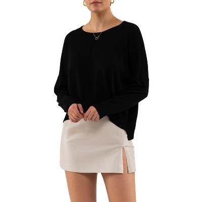 It's the little modern details - Silver buttons on the sides of this ribbed trim sweater make it a must-have.