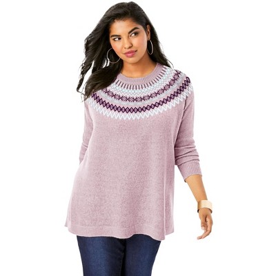 ellos Button-Trim Sweater Tunic - 34/36, Midnight Berry Marled