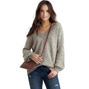Cut for a slouchy fit with a whispy-soft texture, you'll never want to take it off. The subtle blouson sleeves add a feminine touch to this crossover V-neckline pullover. Style it with skinny jeans & a cool half tuck..