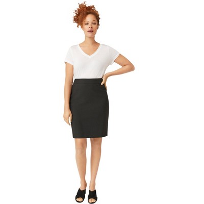 A luxurious sweep of leather-like fabric gives a fashionable edge to this classic midi skirt. Finished with traditional seaming and a super comfortable elastic waist. Perfect for pairing with a blouse or slouchy sweater..